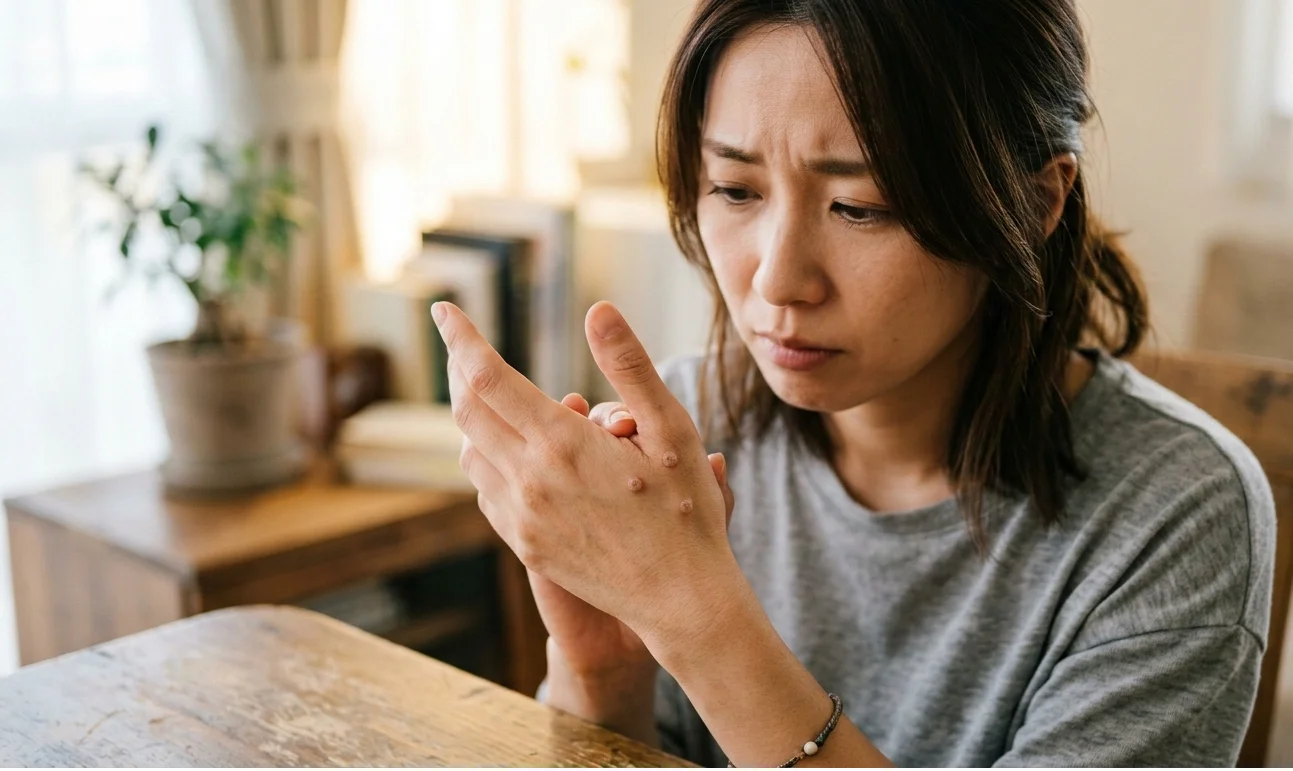 æ°ŽããŒã¯ãŠã€ã«ã¹æ§ã®ç®èææçã§ãèªç¶æ²»çãå¯èœã§ãããåæ°å¢å ãã¢ãããŒå䜵æã¯æ©ææ²»çãæšå¥šãããŸããèªå® ã§ã®èªå·±åŠçœ®ã¯é¿ããã¯ãªããã¯ã§ã¯éº»é ããŒããæŽ»çšãããã³ã»ããæé€ãæšæºçãªæ²»çæ³ãšãªã£ãŠããŸãã
